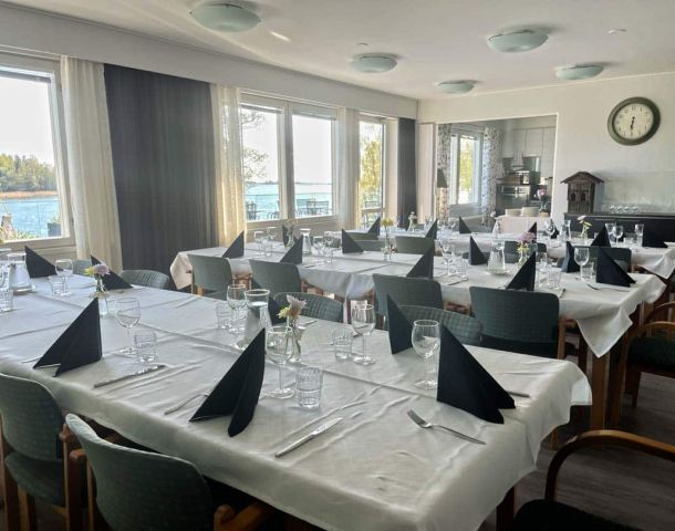 - käynti näköalaterassille, jossa pöytäryhmiä